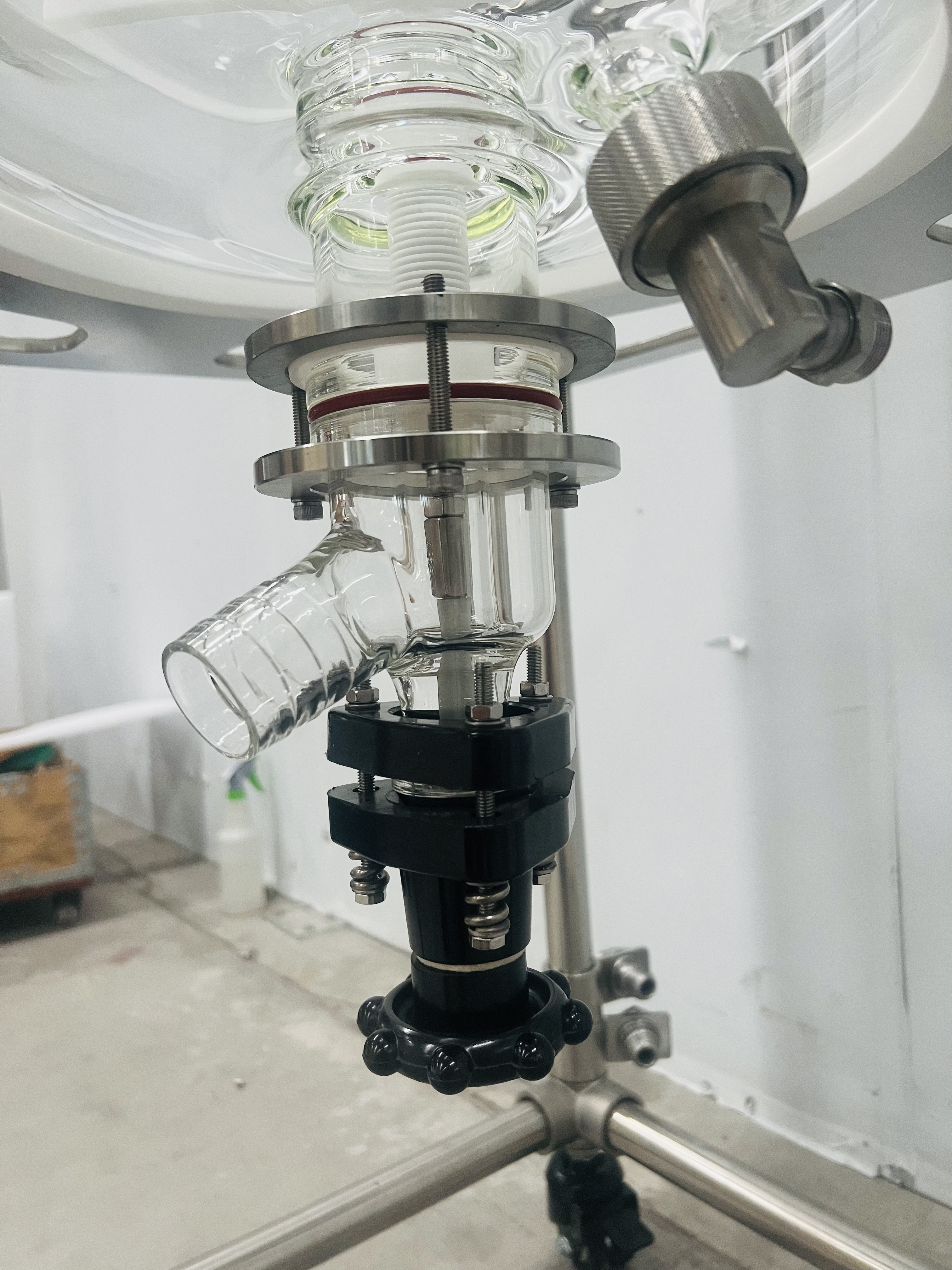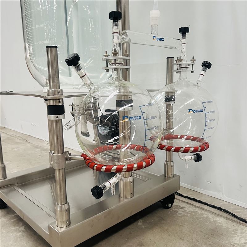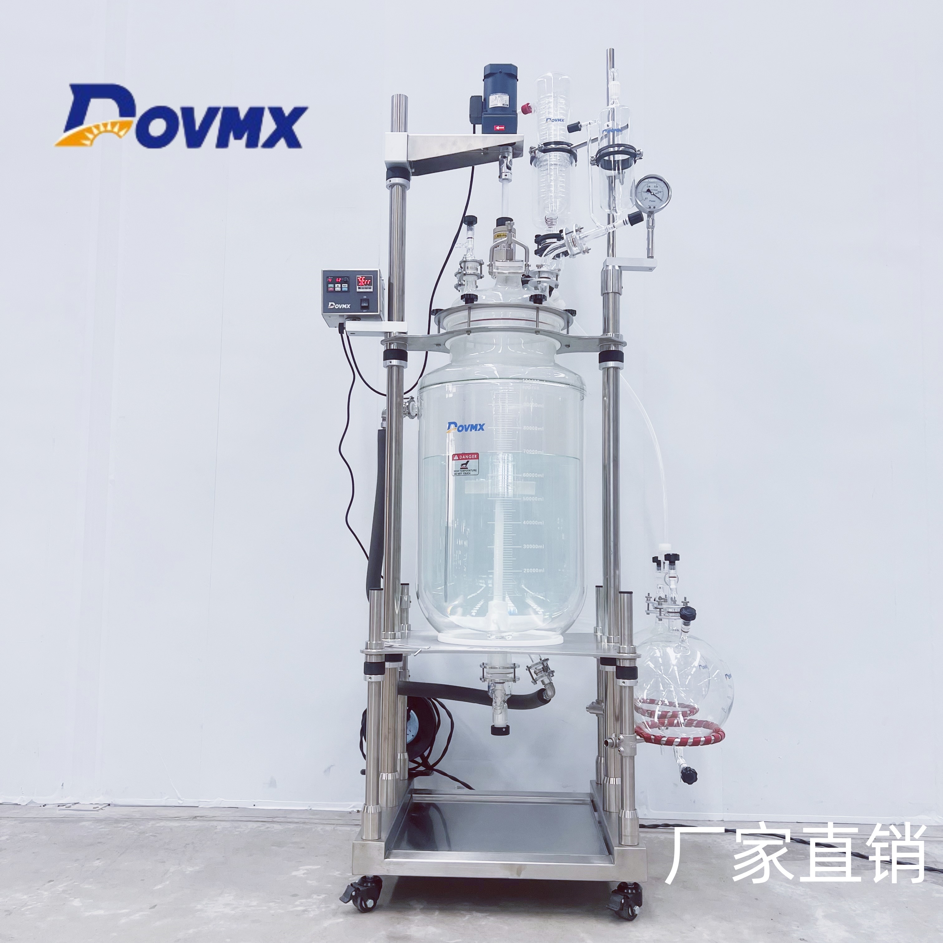 該系列雙層玻璃反應釜內層容器放置反應物料同時可抽真空和調速攪拌使反應物料在減壓條件下,進行氣化、蒸發對物料進行濃縮和提純。夾層可導入冷凍液、水和高溫液(按程序交替使用)對物料進行升溫、冷卻或凍結。